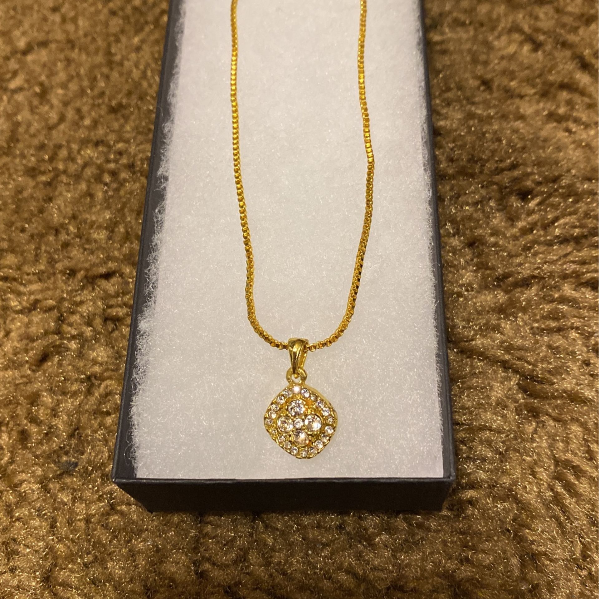 Women’s 14 Kt Gold Plated Diamond Rhinestone Necklace24”