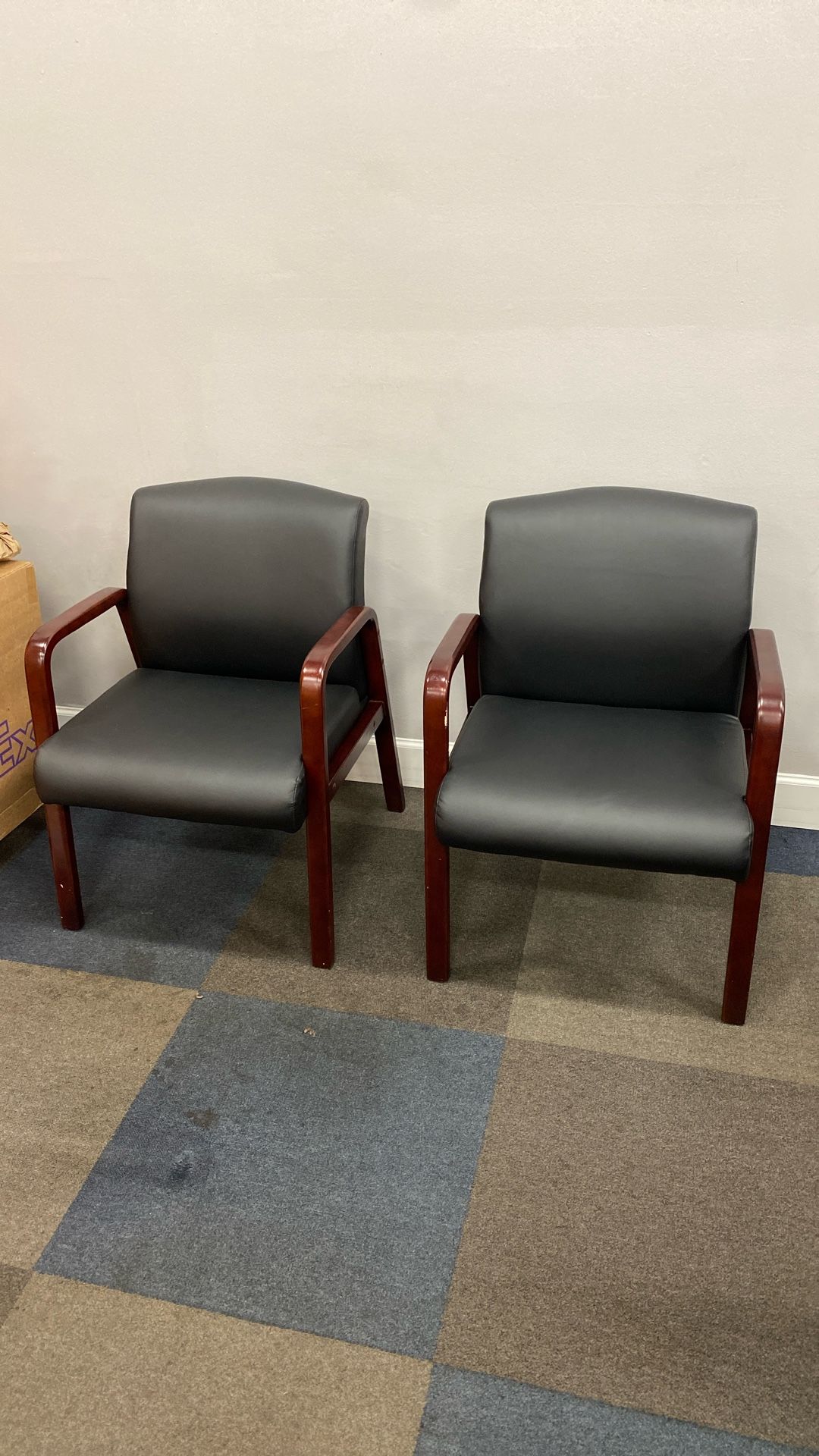 Two black leather chairs for $50