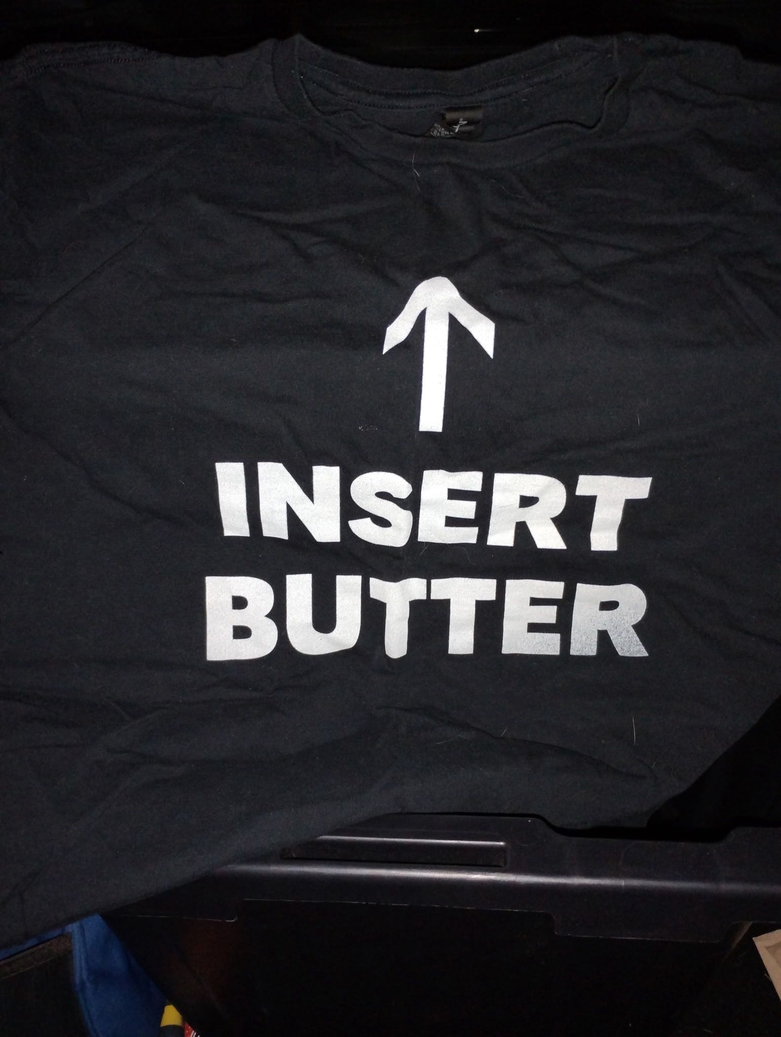 Size medium Insert Butter shirt Black white letters Hilarious comedy shirt