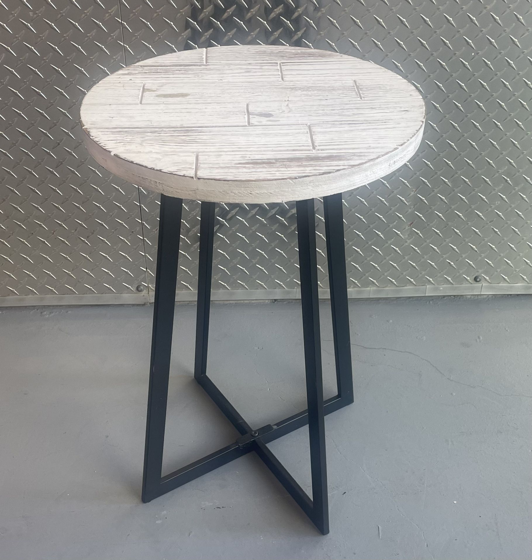 Harper Round Raised Lip Side Accent Table with Mid-century Modern Crossed Metal Bold Pedestal Legs By Danya B. 15.5”R x 22”H