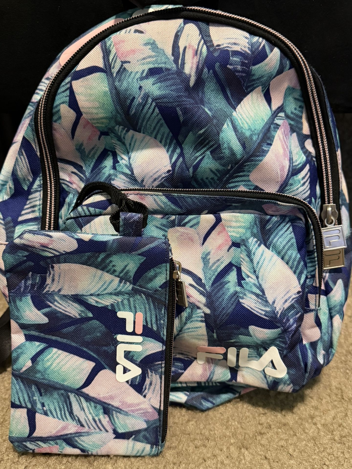 Mini FILA leaves backpack $10 or OBO Gently used, comes with mini wristlet * can fit composition notebooks * can fit most iPads * can fit clothing * can fit personal items for work or everyday life