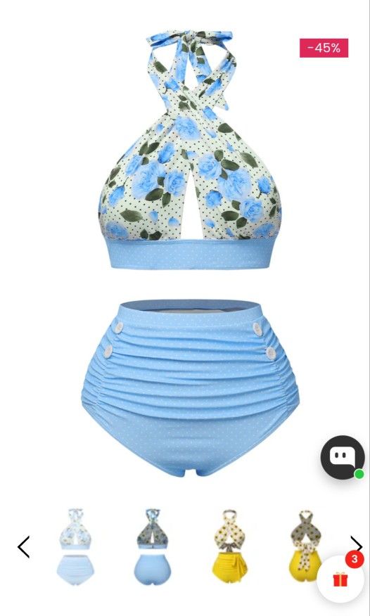 Blue 1940's Floral Cross Halter swimsuit. Size L-8. Brand new.