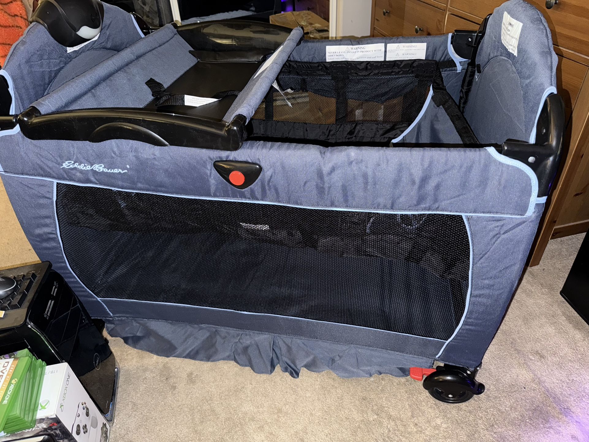 Eddie Bower Play And Stay W/ Bassinet And Travel Bag