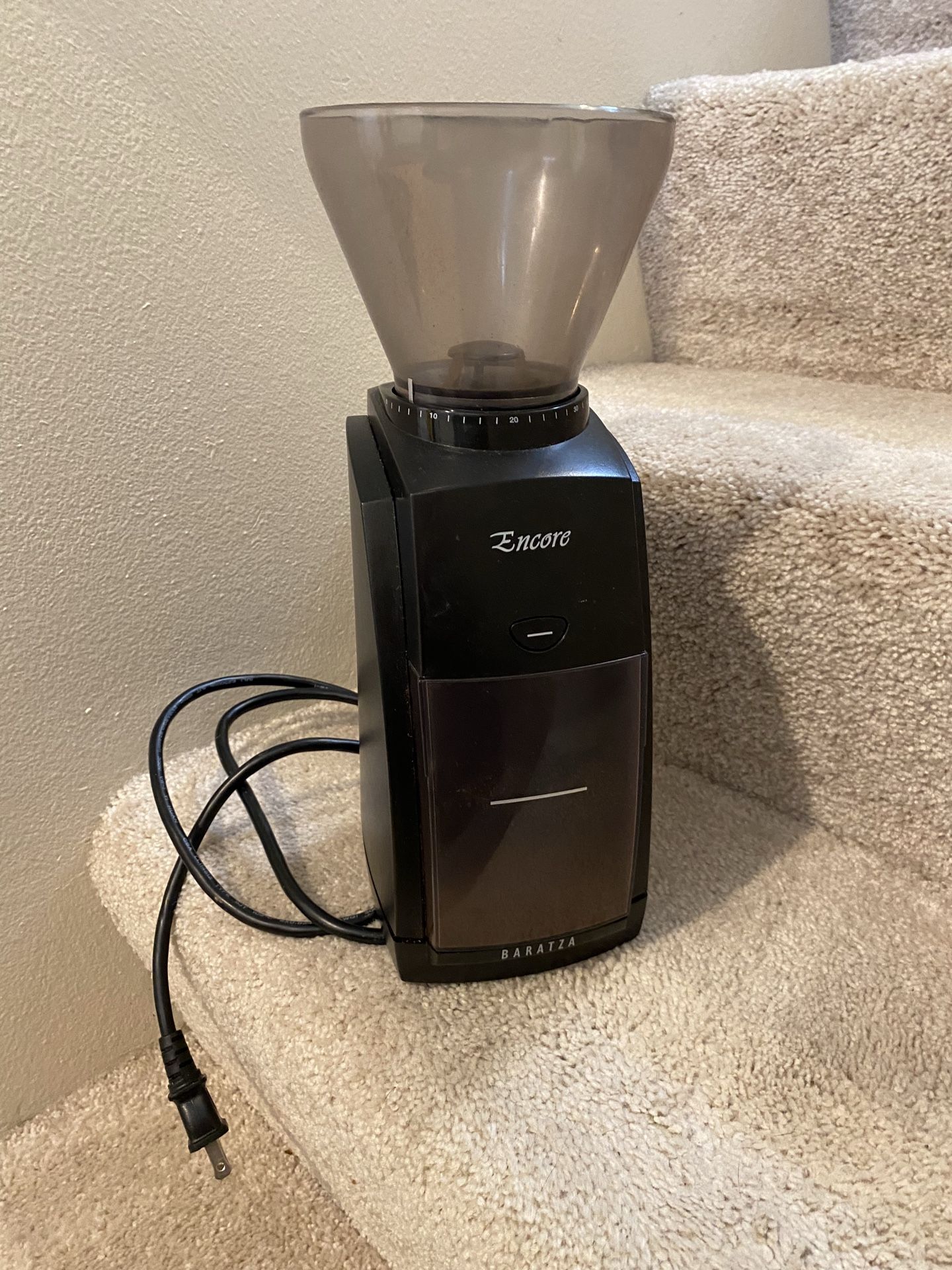 Selling because we got a new coffee grinder with our new espresso machine. Works well but we lost the top. This is original https://offerup.com/redirect/?o=aHR0cHM6Ly93d3cud2lsbGlhbXMtc29ub21hLmNvbS9wcm9kdWN0cy9iYXJhdHphLWVuY29yZS1jb2ZmZWUtZ3JpbmRlci8=