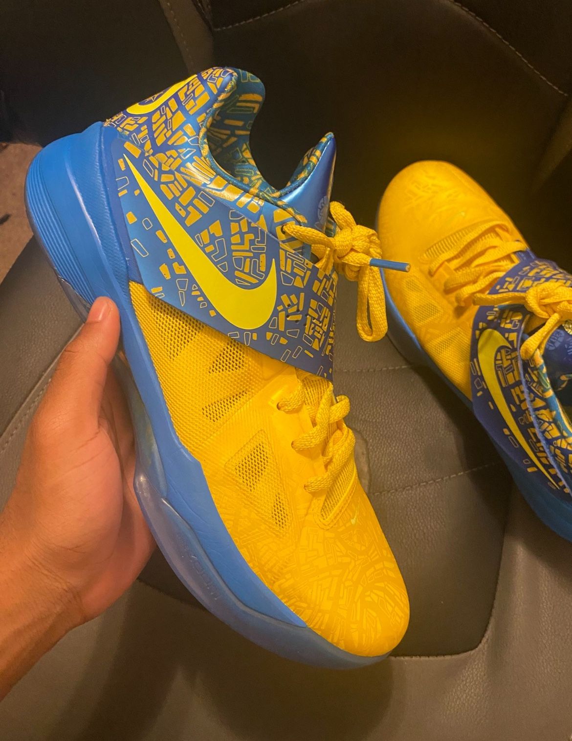 kd 4 only worn inside never worn outside only worn twice just got dust on the bottom and st the tip of the shoe size 11