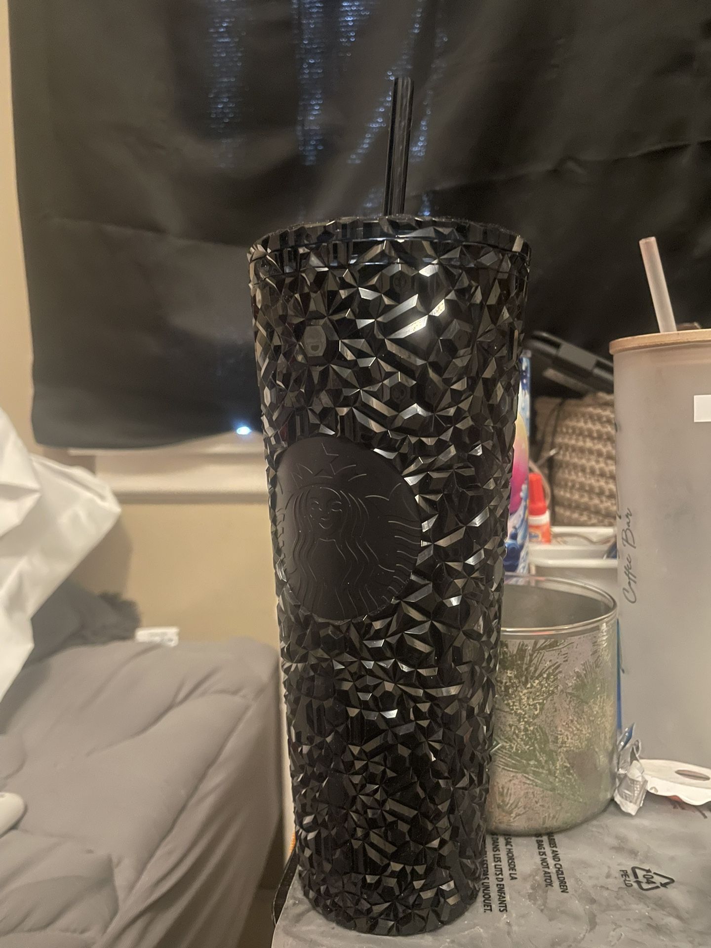 Black 24oz The outside of it is detailed with a design Kept in great condition.