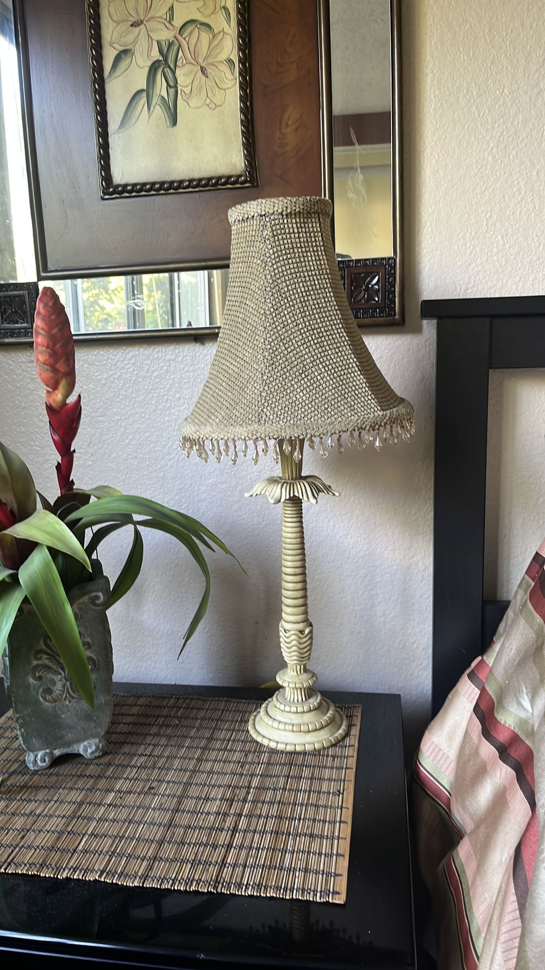 2 ft tall vintage table lamp with beaded shade