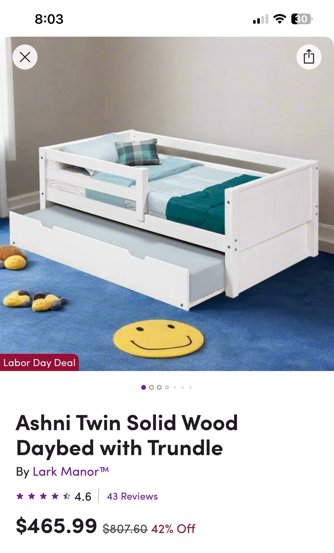BRAND NEW unassembled in box. Solid wood! Retails on Wayfair for $800 when not on sale. https://offerup.com/redirect/?o=aHR0cHM6Ly93d3cud2F5ZmFpci5jb20vYmFieS1raWRzL3BkcC9sYXJrLW1hbm9yLWFzaG5pLXR3aW4tc29saWQtd29vZC1kYXliZWQtd2l0aC10cnVuZGxlLXcwMDU4MDU4MjUuaHRtbD9waWlkPTYwODIyMDEz Ashni Twin Solid Wood Daybed with Trundle