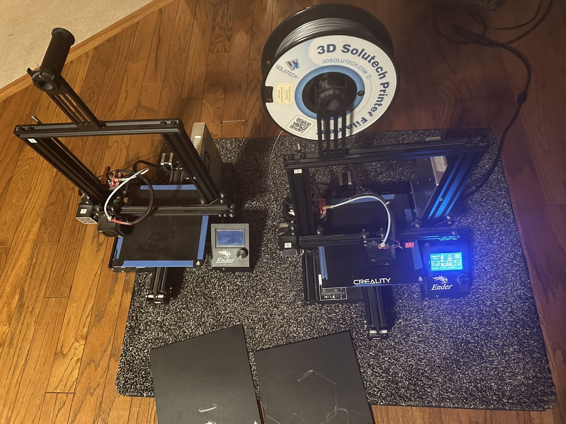 Two Ender 3 3D printers. They work but I don’t use them anymore. Priced for both. Have a bunch of filament too.