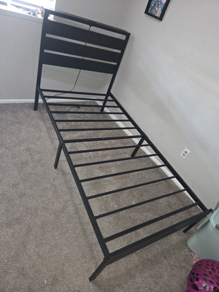 Twin bed frame and mattress for sale. The mattress was hardly used and is very clean. The bed frame is used but in great condition and very sturdy. It also has a built-in charging port, which is super convenient for phones and devices. Perfect for a kid’s room, guest room, or small space. Pickup only. Message me if interested.