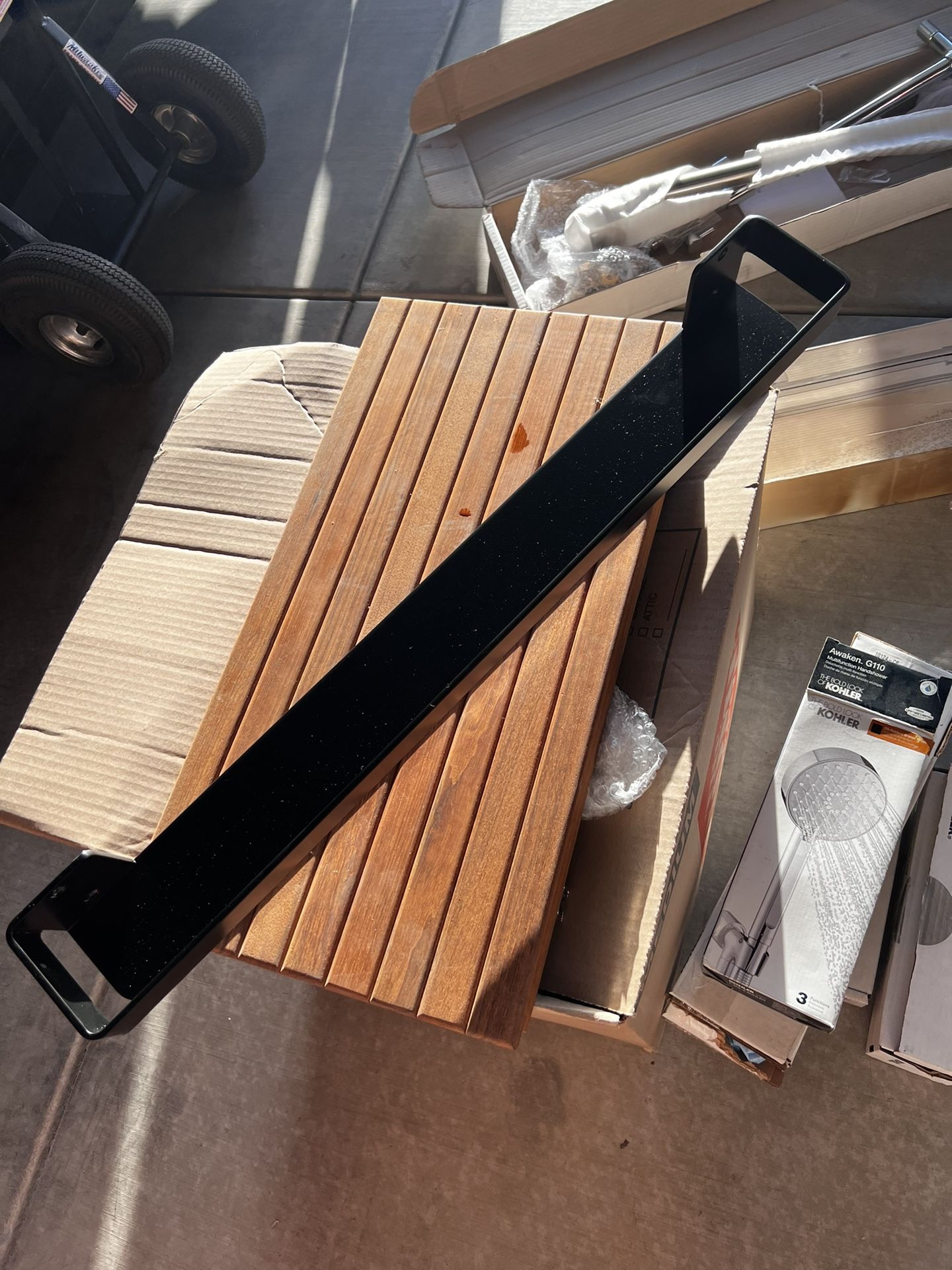 $100obo Never used Brand new in store is $430 JACUZZI 30 in. Stainless Steel Shower Shelf offers superior durability. in matte black. This shelf can be used inside or outside of the shower. Stainless steel construction offers added durability and strength Can be installed on tile, inside or outside of shower Designed for worry-free water drainage Rail ensures that showering products do not fall from shelf