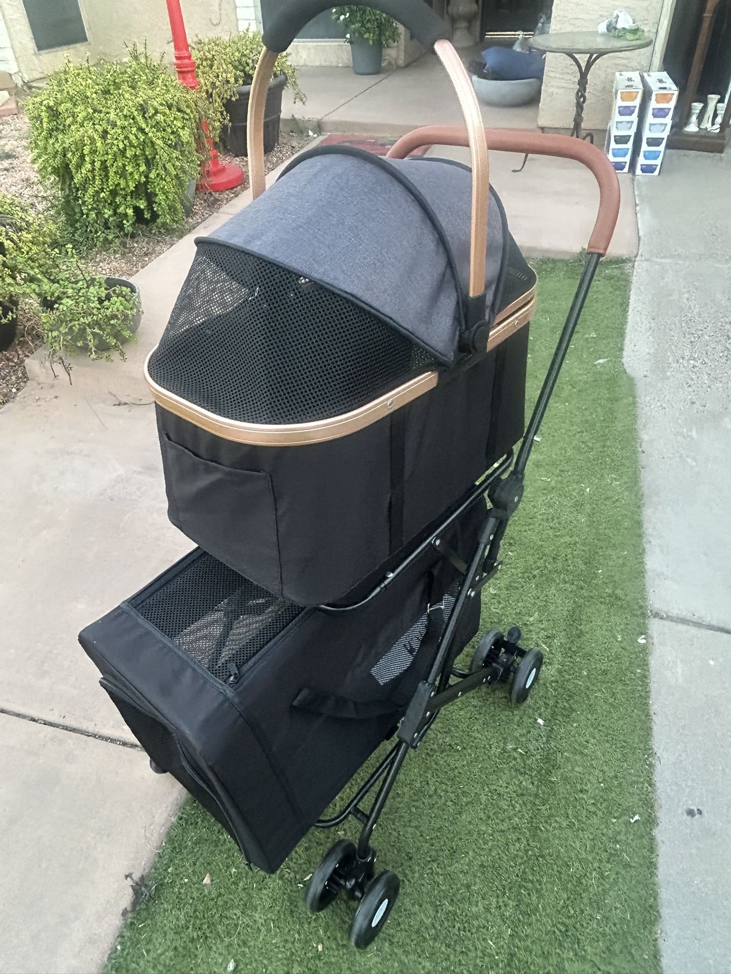 2 tier design. Detachable carriers. Weight limit 22lbs upper. Lower carrier 33lbs. Firm price pickup only