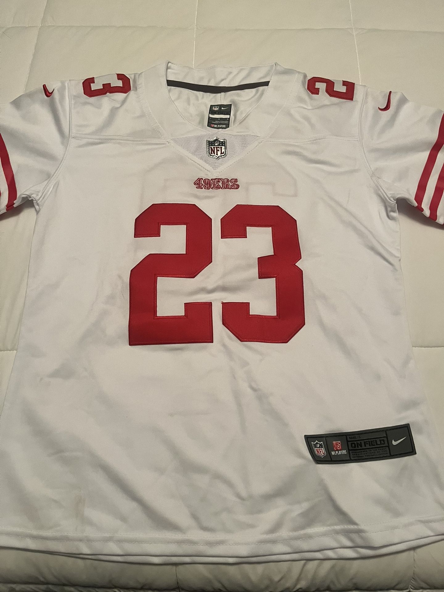 This is a brand new Christian McCafferey #23 Nike 49ers Jersey. Never worn did not fit. Can’t return. Size is women’s large but fits like a medium.