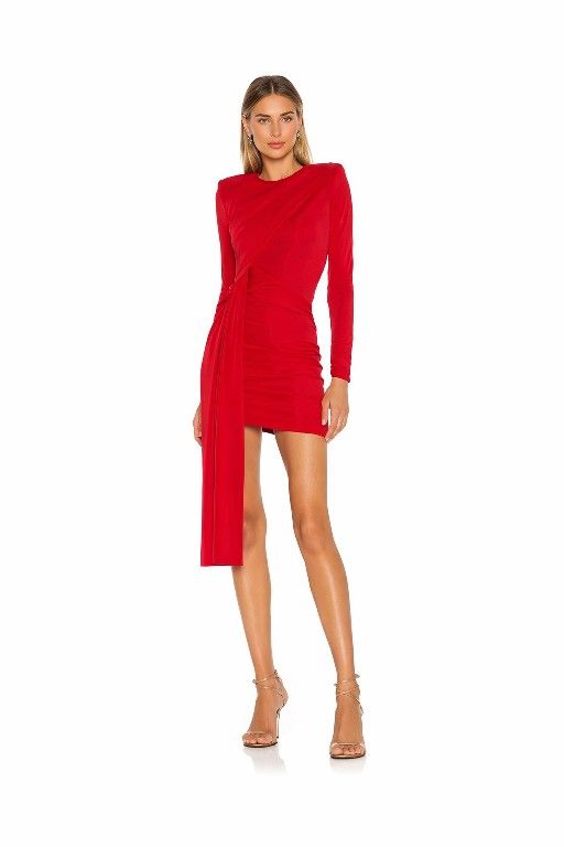 Michael Costello x REVOLVE Red Draped Long Sleeve Mini Dress – Size S – Never Worn