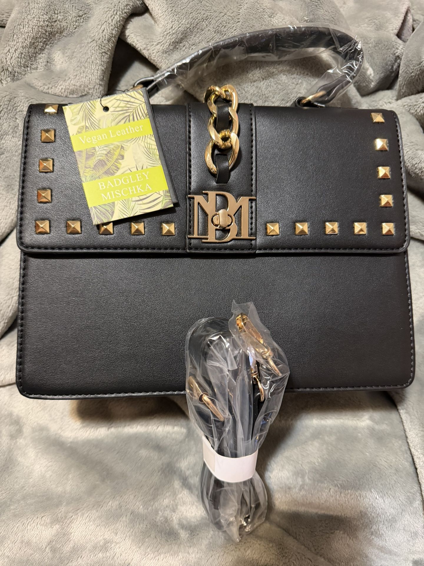 BM black studded top handle bag. Vegan leather. Brand new with tags.
