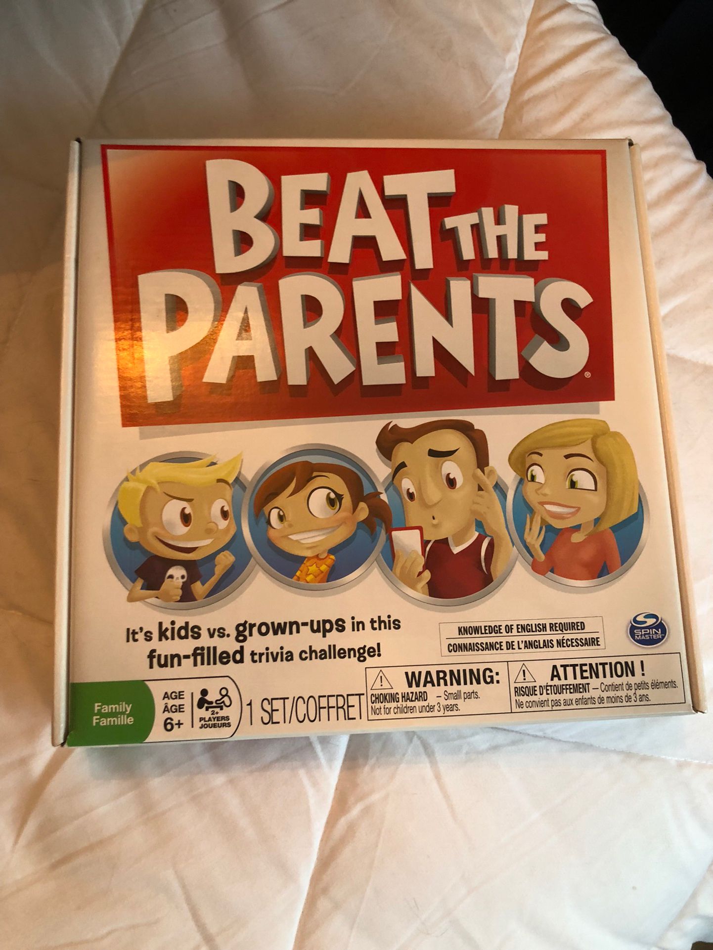 Board Game for Families - Beat the Parents! Family trivia game. “Where adults answer questions about kid stuff and kids answer questions about adult stuff.” Like new condition. All pieces here. Box in perfect shape. Clean home. $10 obo Key words: Homeschool, Classroom, Resource Room, Assisted Living, Reduce Screen Time Like New