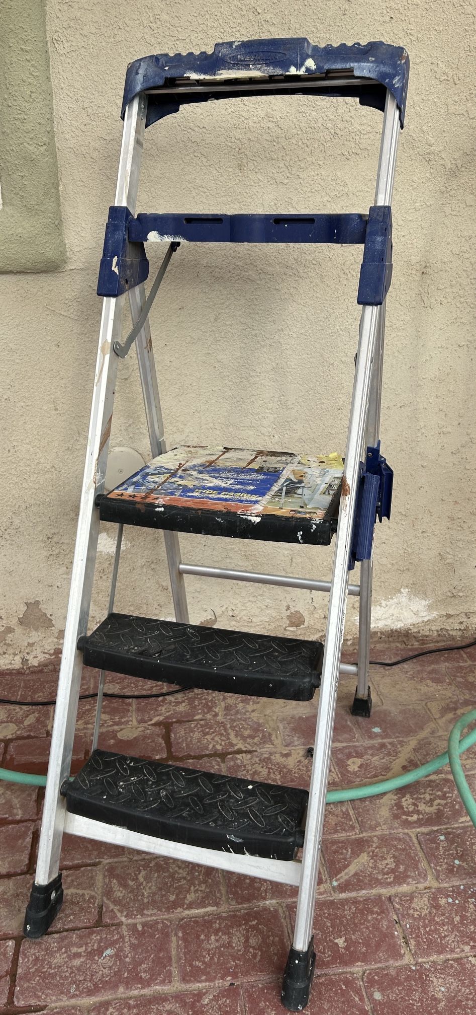5ft Ladder with platform, max reach height 8ft-9ft. Large standing platform for long standing comfort. With handles for easy carrying and transport. Very sturdy.
