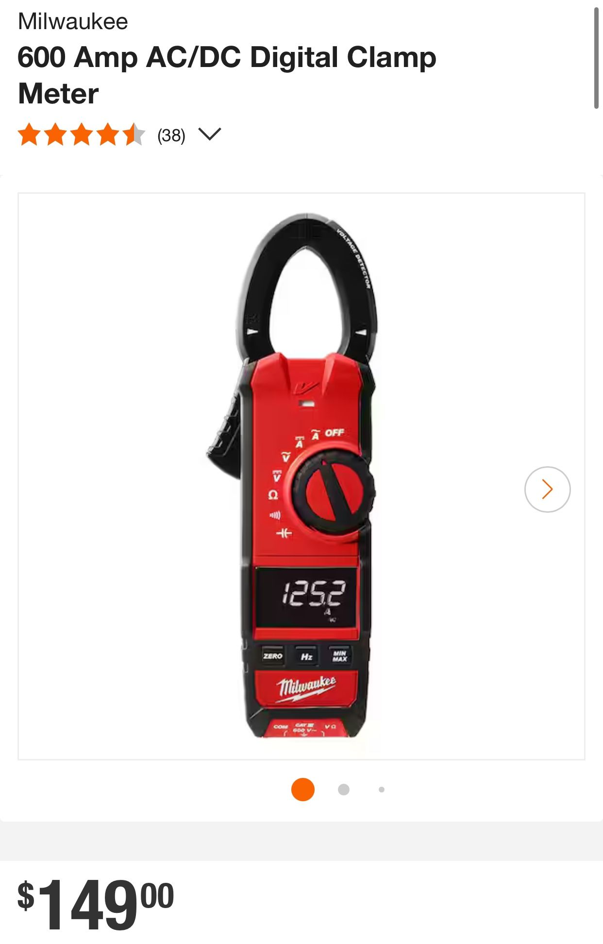 Milwaukee 600 clamp meter (New Model) (Model Number: 2237–20)