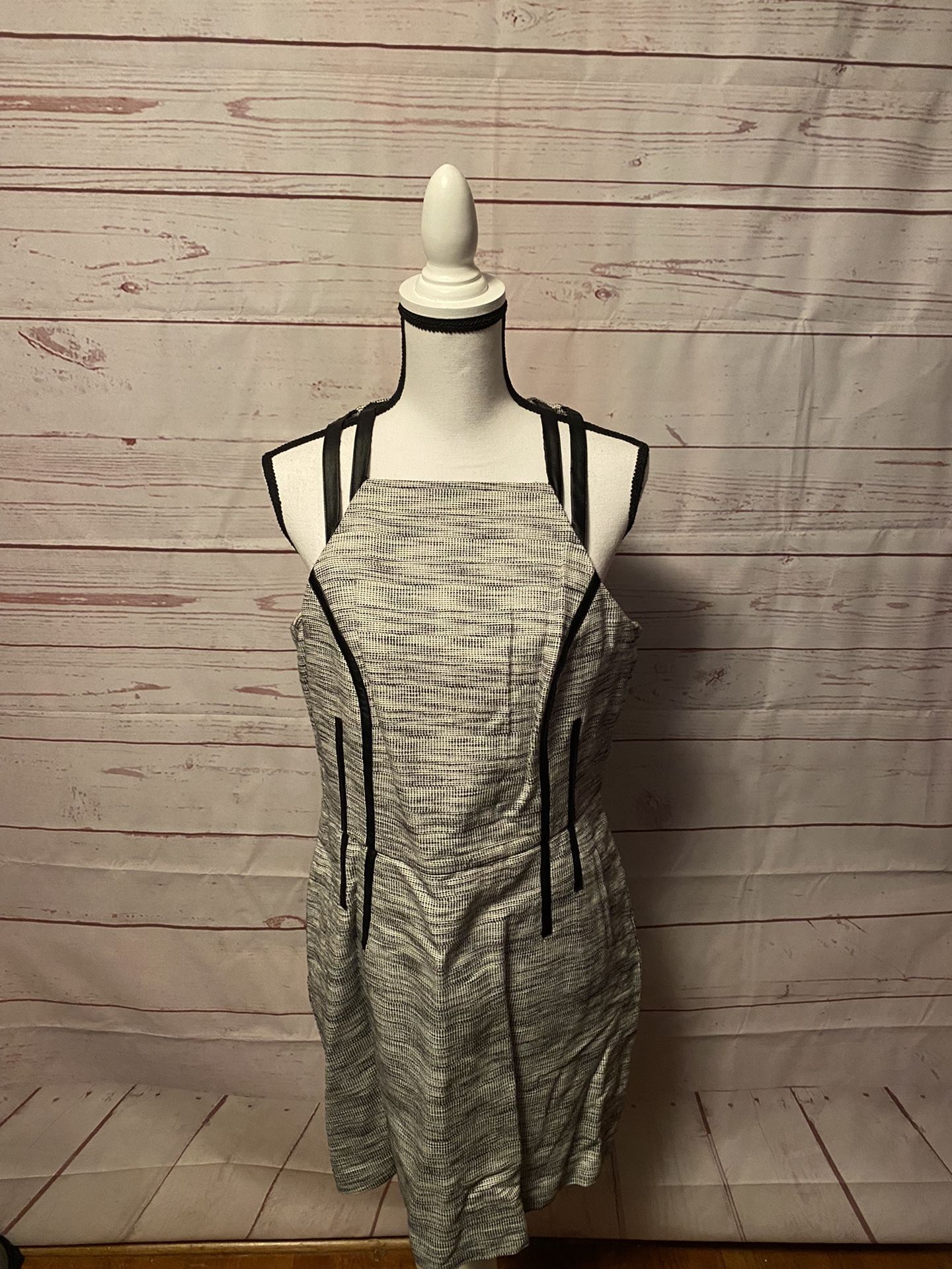 Size 14 I Love Ronson sheath dress w/faux leather trim NWT Grey textured sleeveless dress with black faux leather halter effect straps Faux pockets Full zippered back with hook and eye closure. New with tags. Classy, simple, elegant. Wear alone or pair with a blazer and a pair of pumps and you’re ready to go from daytime to nighttime.