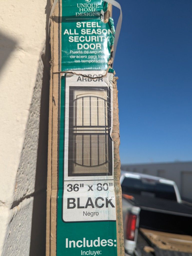 Brand New, Unopened 500+ tax at HD, my price no tax and cheaper ✅Heavy Duty 36x80 Arbor All Season security door ✅Interchangeable panels allow you to alternate between glass and screen. Requires storage of panel when not in use. ✅Comes with 3 interchangeable glass inserts and 1 interchangeable screen insert, to provide light and ventilation no matter the season ✅1/2 in. Square-tube, forged steel pickets and arched design ✅Heavy-duty lockbox with 2-3/8 in. backset (lockset not included) ✅Protective powder-coat for a beautiful and durable finish ✅Reversible for left or right-handing allows versatility when installing ✅Recessed mount door affixes to the inside of the trim, typically on brick mold applications ✅18-Guage steel frame and 22-Guage steel pickets ✅Rust resistant fasteners included ✅Door closer and wind chain included with mounting hardware ✅Cash only, located on Westbank (Harvey) ✅Delivery available for a fee.