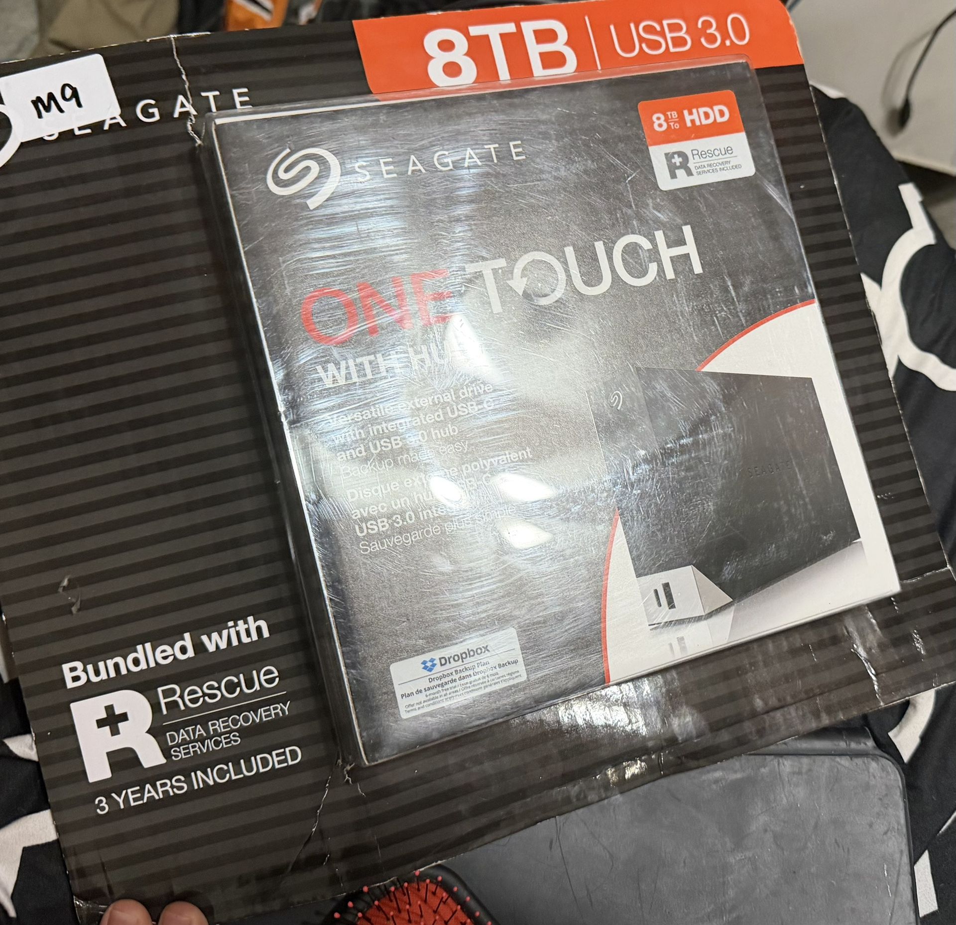 8 terabyte external hard drive with hub. Open box but never opened or used. Needed a different hard drive so selling this 1 for a bit cheaper than I got it for. Got it at costco for $140.