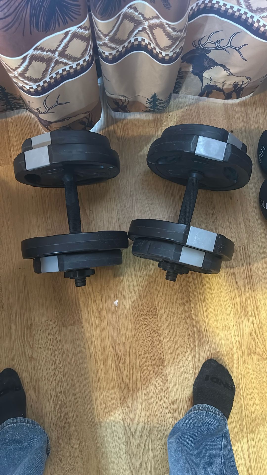 This comes with 4: 5 pound weight,4: 2.5weights 04 knobs in the 2 bars