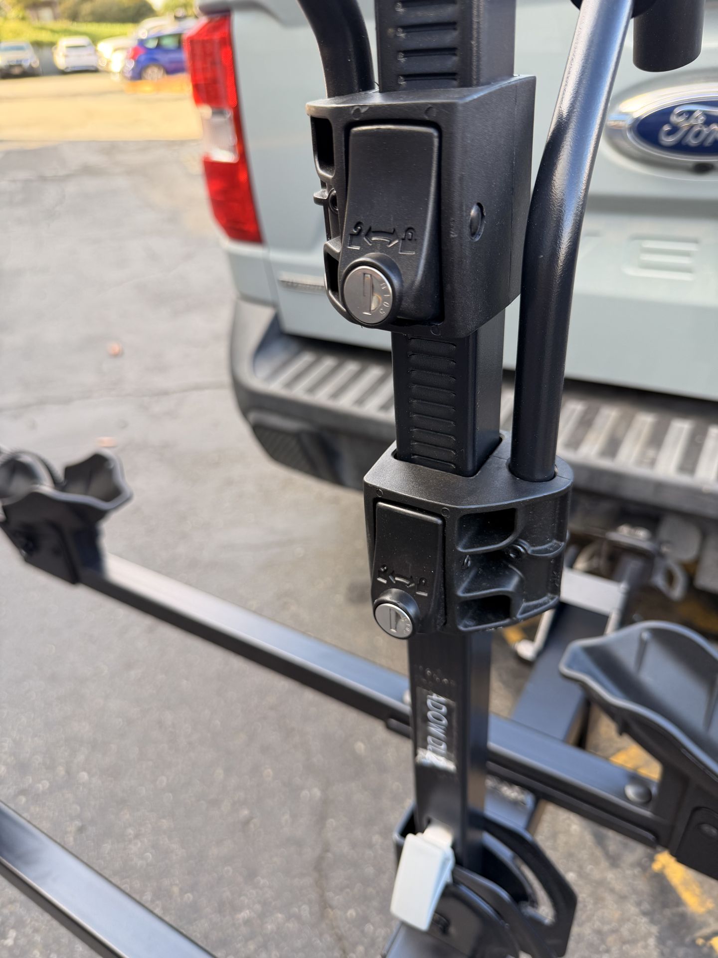 For either 1 1/4” or 2” receiver Max 90lbs, good for one ebike Comes with security locks for frames Racks light weight at about 35lbs
