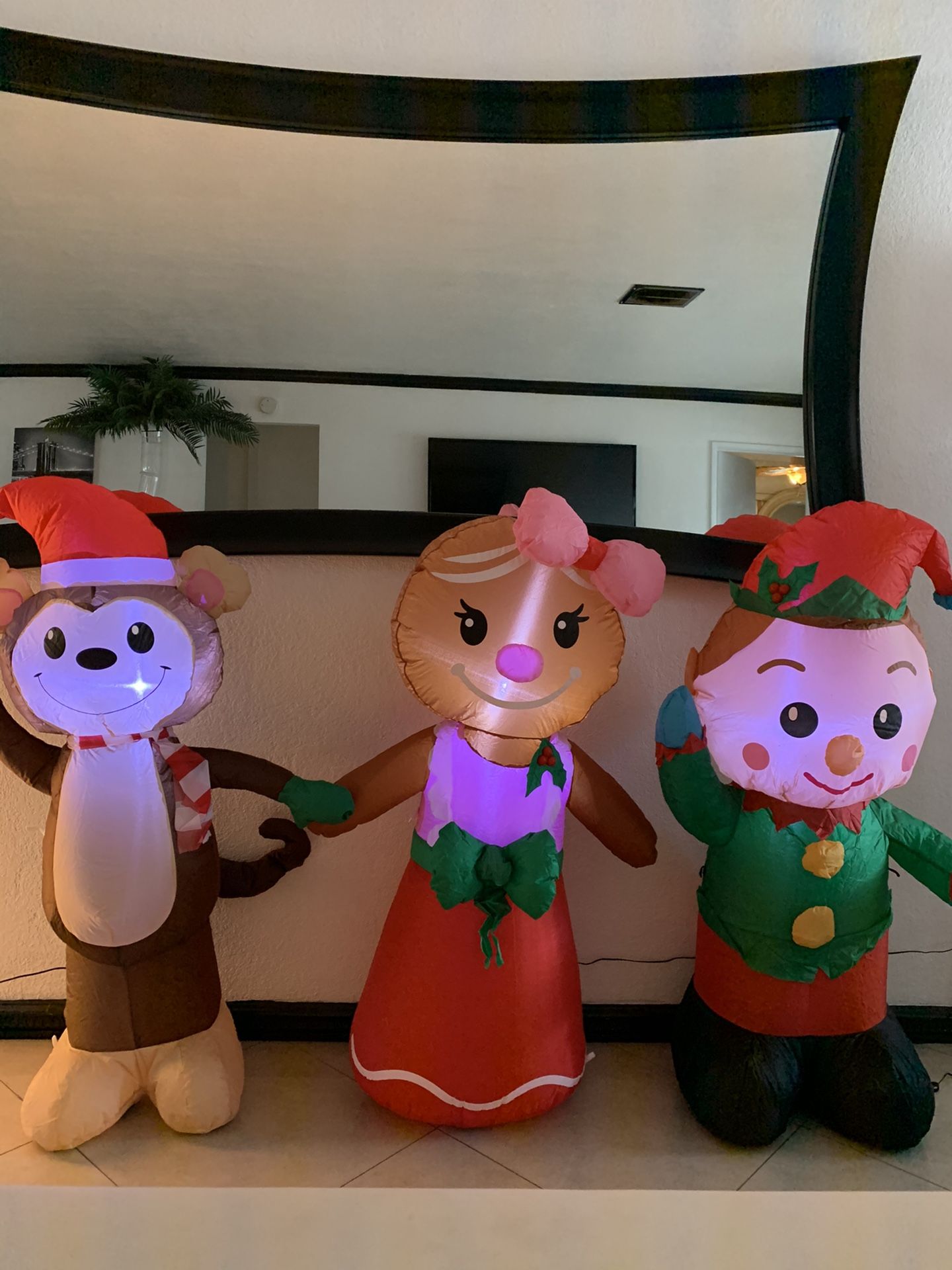 Adorable elf, gingerbread woman, Inflatable’s to celebrate Christmas holiday