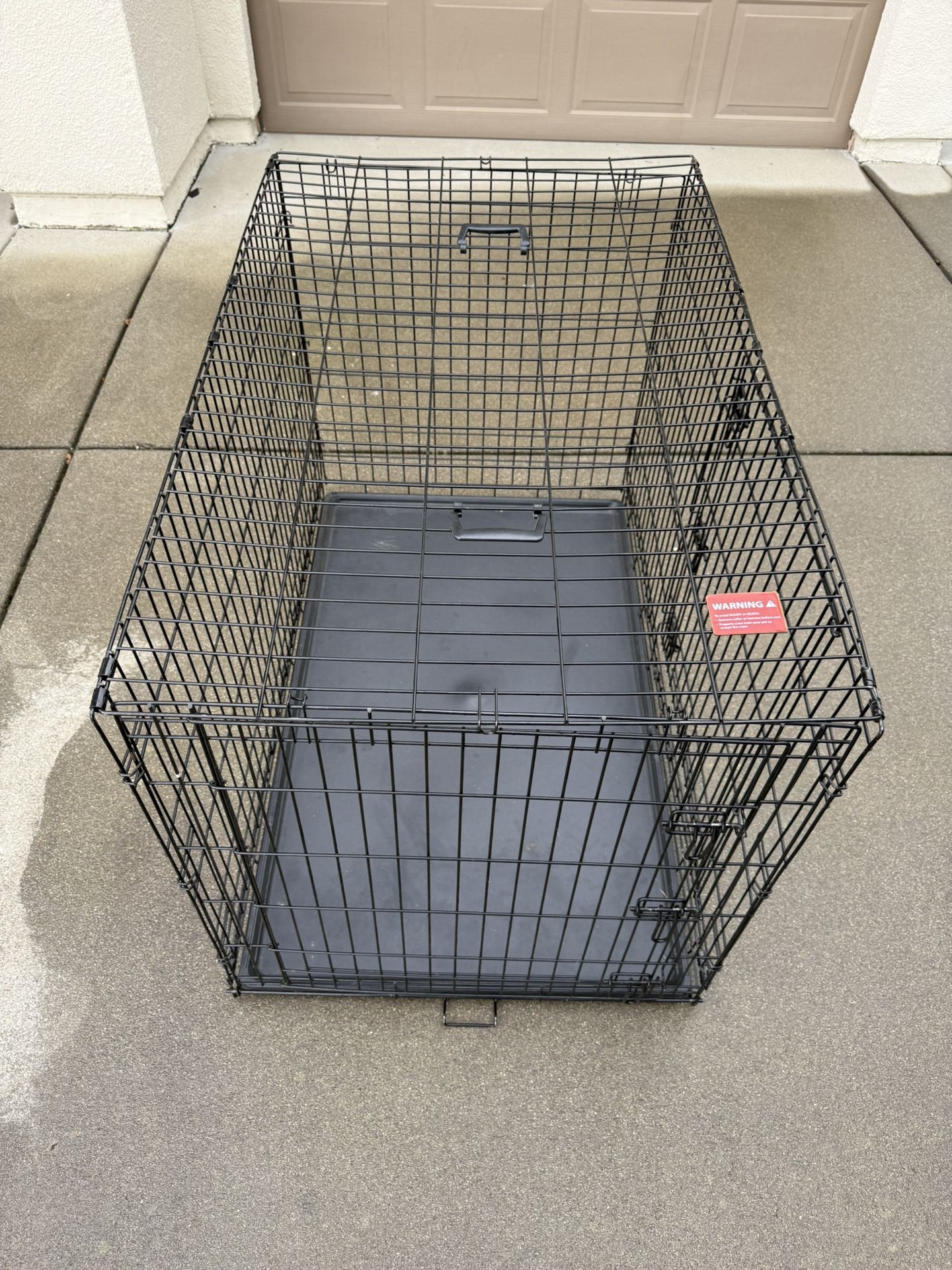 -Designed with added security features to keep your pet safe, including Paw Block and locking tips on the slide-bolt door latch(es). -When in doubt, bigger is better. -This dog crate has protective rubber feet, a carrying handle, a divider panel, and a durable, leak-proof plastic pan. -This portable crate is easy to assemble—you can set it up in just seconds with no tool required. Plus, it conveniently folds flat for travel. -The durable and strong, quality construction creates a secure place for your furry friend to den, with proper ventilation, large door openings with low thresholds, and patented rounded corner clips.