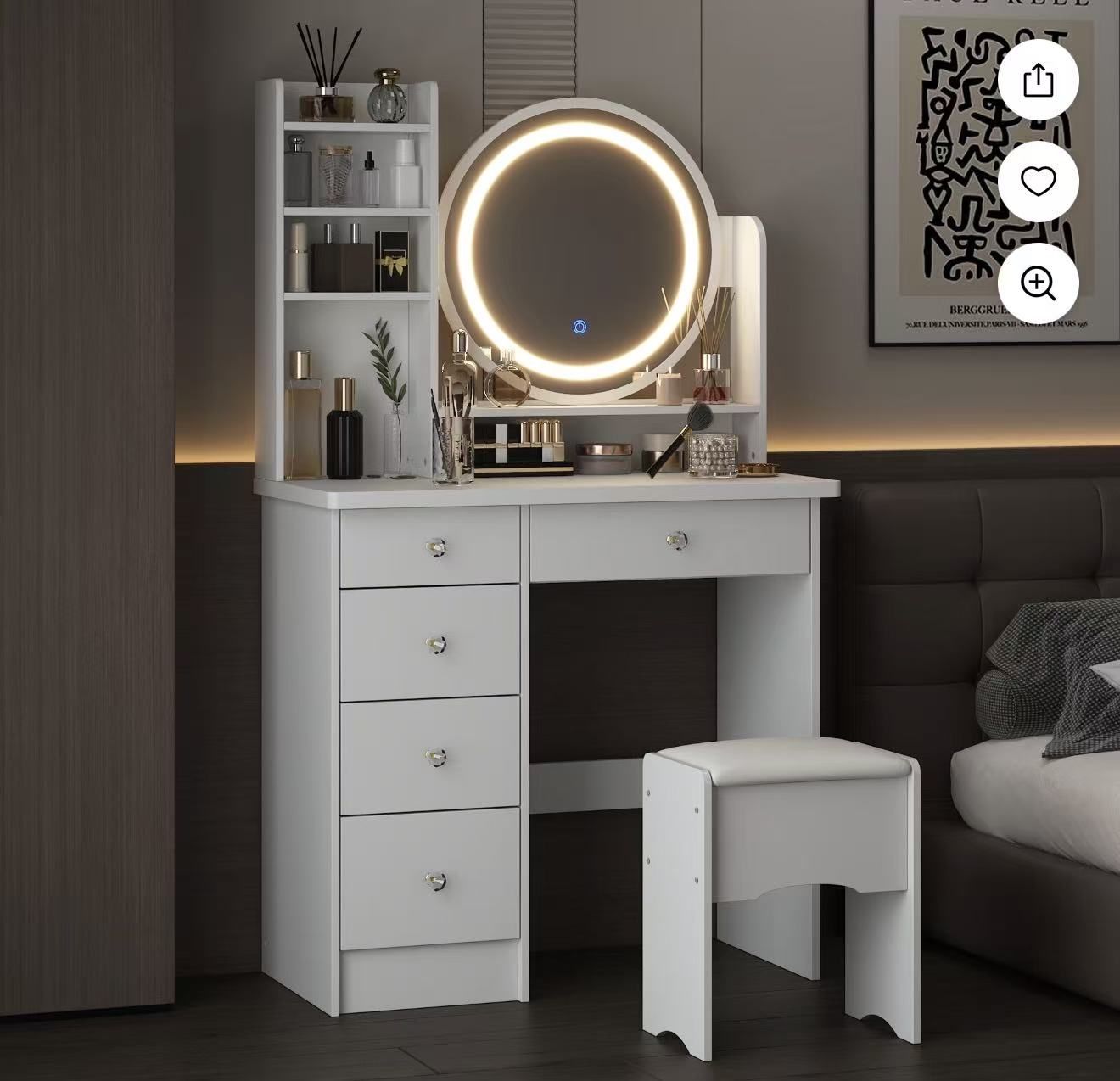 Makeup Organizer, 5-Drawer Makeup vanity Table, White $80