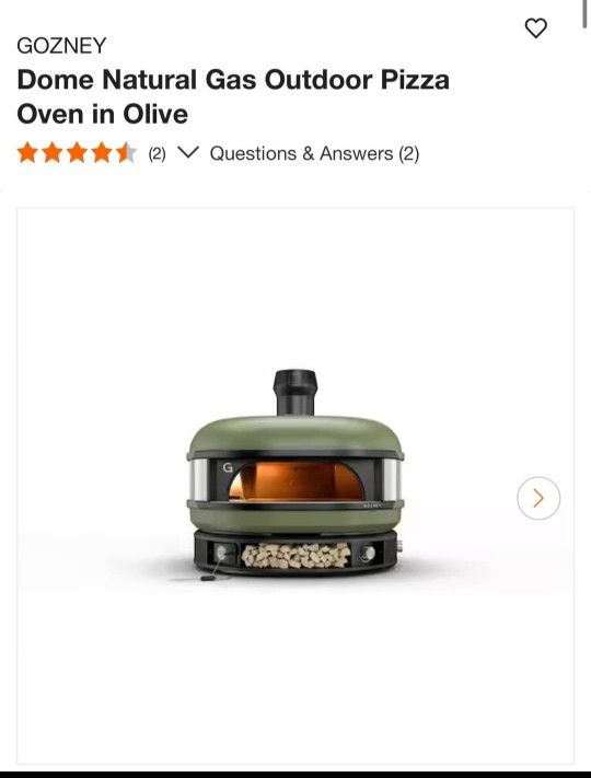 GOZNEY Dome Natural Gas Outdoor Pizza Oven in Olive —-—- $800 ———— - Specifications Dimensions: H 26 in, W 28.8 in, D 24.8 in — Extra wide mouthManeuvering food is easy with the Dome's 16.1 in. x 5.1 in. mouth and 22 in. x 18 in. oven floor. You can easily fit a large 16" or a couple of smaller pizzas in if you're feelingambitious. Dual Fuel Natural GasEnjoy the convenience of gas or the tradition of wood fired cooking with our dual fuel Dome. This variation is fueled by NG gas. With 2 very small dents on the back side New open box item