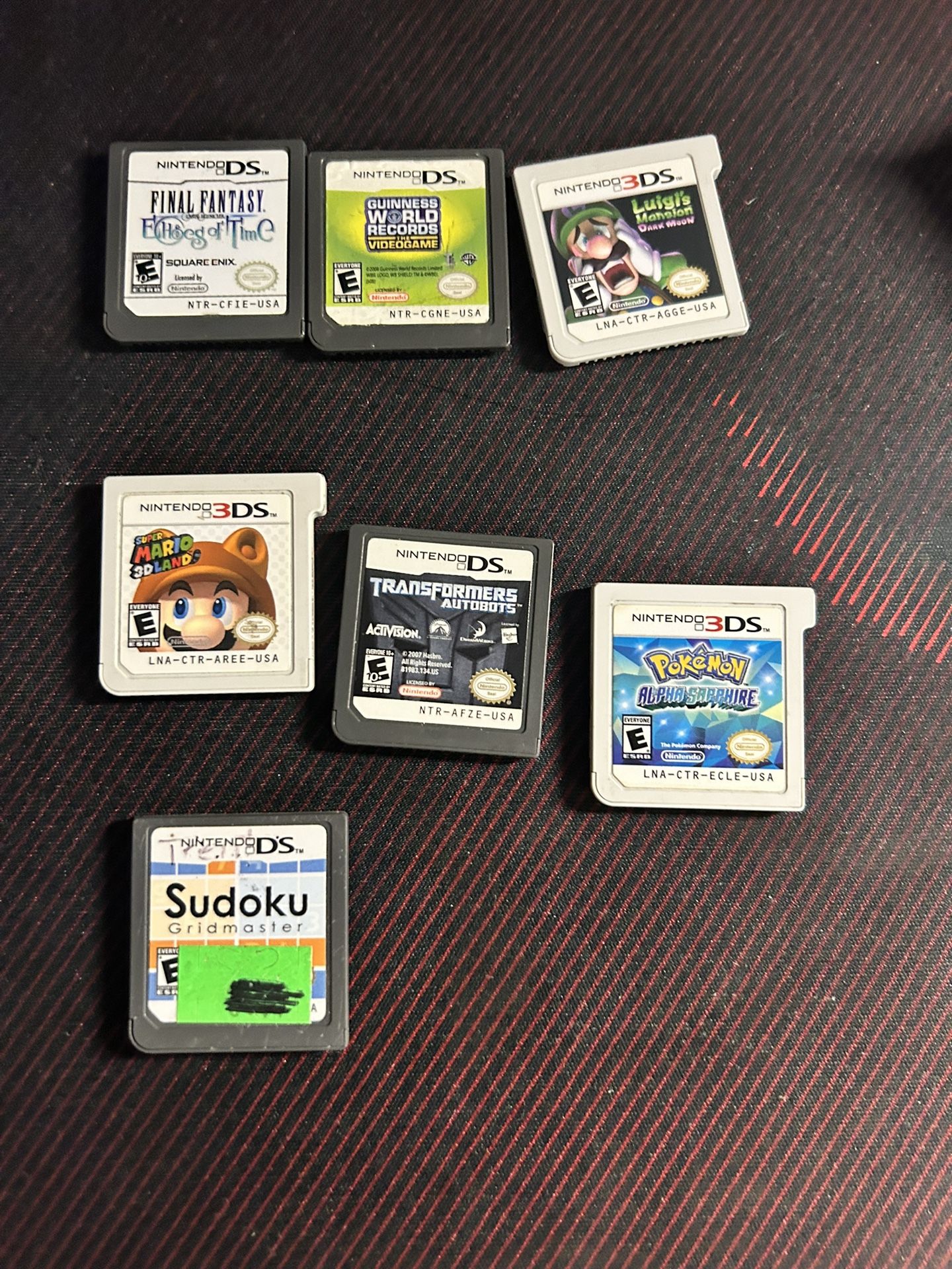 3ds alpha sapphire - 40 Super Mario 3d land - 10 Luigi mansion dark moon - 5 Final fantasy echos of time - 15 Rest of the ds game is 1 dollar each All tested and working Not a bot or a scammer