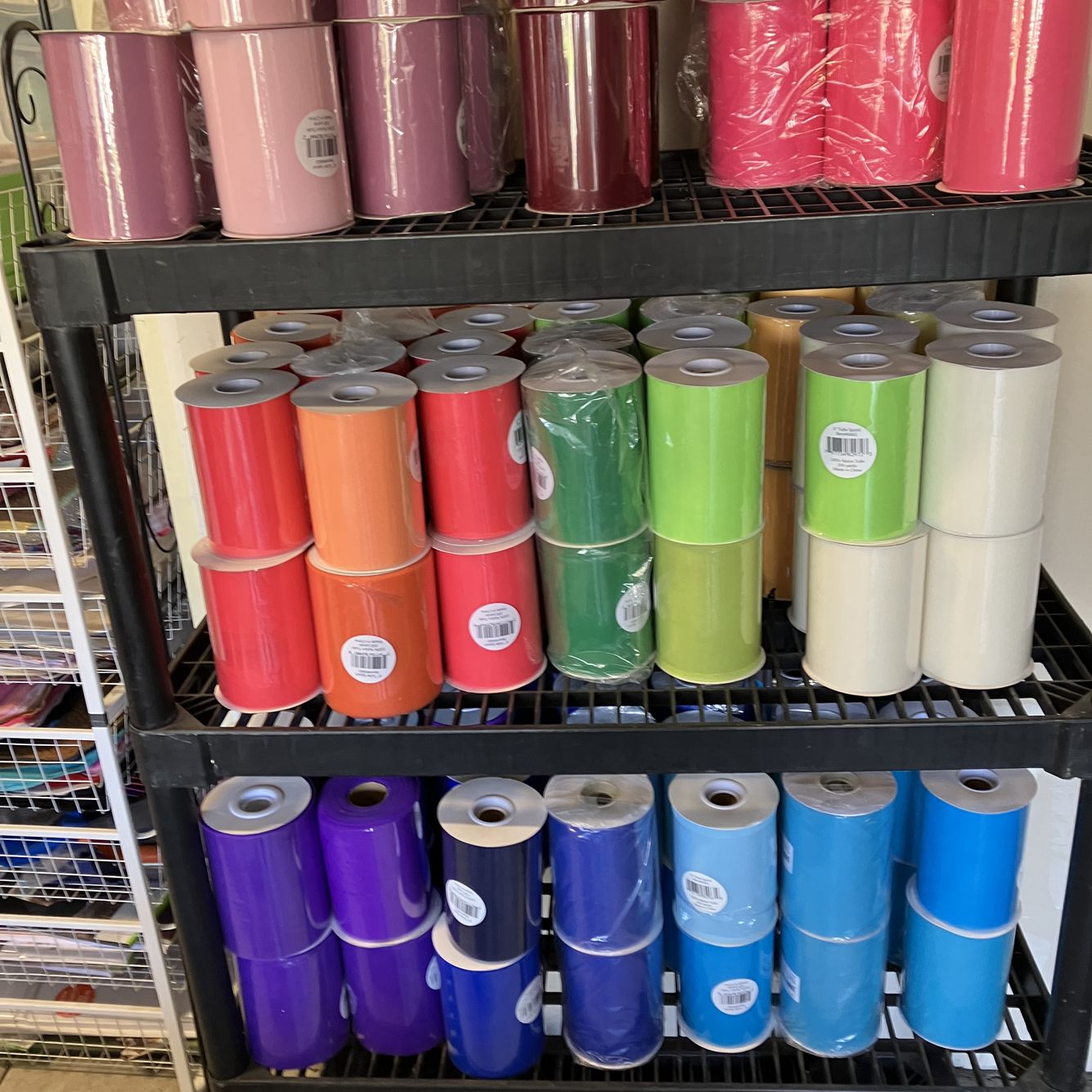 I have tons of 100 yard x6 inch spools of Tulle. A few of 25yards x 6” Lmk if interested and we can work out a deal.