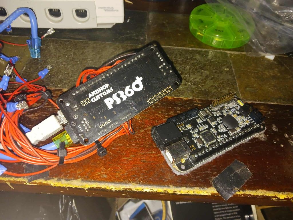PS360+ is a multi-console PCB for arcade sticks/cabinets that works on: Xbox 360, Playstation 3 (with Playstation 2 Backwards Compatibility), Xbox, Wii U/Switch (Pokken), NES, SNES, Dreamcast, Saturn, PSX, PC and PS4 (8min timeout), with smart-detection for all supported systems. PS360+ uses a USB Bootloader for firmware updates so if new software comes out it can easily be updated through a computer. It has a 2.5mm audio head set jack for Xbox LIVE (Xbox 360), player LED support for Xbox 360, PS3 and Dreamcast (on-board and external, cable NOT included). If you don´t want to use this feature then there is an optional on-board LED disable solder jumper. PS360+ has a USB "B" and RJ-45 jack with the optional use of a wire harness (NOT included). USB jack is used as a standard output (Xbox 360/PS3/PC), RJ-45 may be used for all supported systems. It has software selected LS/DP/RS, LSB/RSB support and support for Forced Modes as well. PCB size: 96.3mm x 45.3mm. Mounting holes: 88mm x 37mm. I have 2