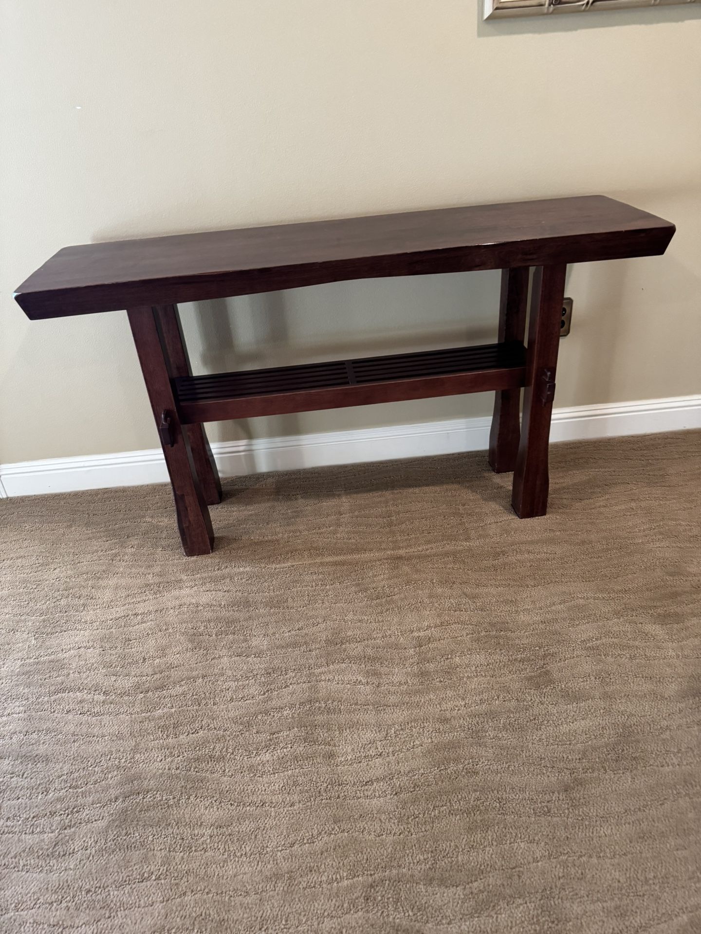 Wood end table 58”x16.5”x 31 5/8” (WxDxH)
