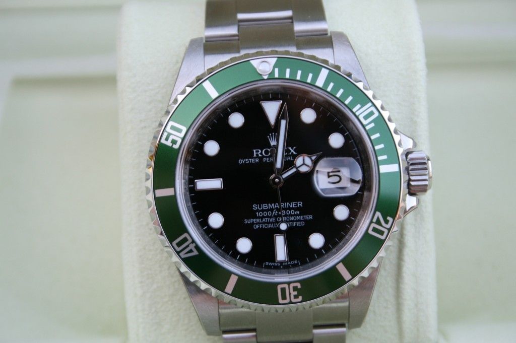 Rolex Submariner Green bezel 50th anniversary model 16610LV M serial New Old Stock T9333 ------------------------ Levi Family Jewelers Is a Third-Generation Jeweler Committed to Developing Relationships That Last a Lifetime. Part Of That Is Making Something Clear to You. We are not an official dealer for any of the watch brands we sell and have no affiliation with any of the manufacturers. All brand names and trademarks are the property of their respective owners and are used for identification purposes only. We are not affiliated with Rolex S.A., Rolex USA, or any of its subsidiaries, Rolex, the Rolex website, is under no obligation to warranty or service watches sold by Levi Family Jewelers. Rolex Datejust, Rolex Day Date President, Submariner, Presidential, Explorer, Sea Dweller, Super President, GMT Master, GMT, YachtMaster, Prince, Milgaus, MasterPiece, Air King, Cosmograph Daytona, and PearlMaster are all registered trademarks of the Rolex Corporation ( Rolex USA, Rolex S.A.) To buy a new Rolex watch, please visit the Rolex website for a list of authorized Rolex dealers near you.