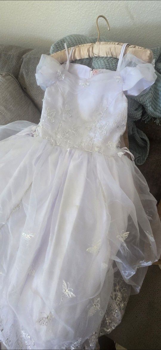 Purchased from Alegria- Gala. Smoke and pet free home. My daughter wore it once. Size 14. The sides tie, so it can be gathered or let out for more room.