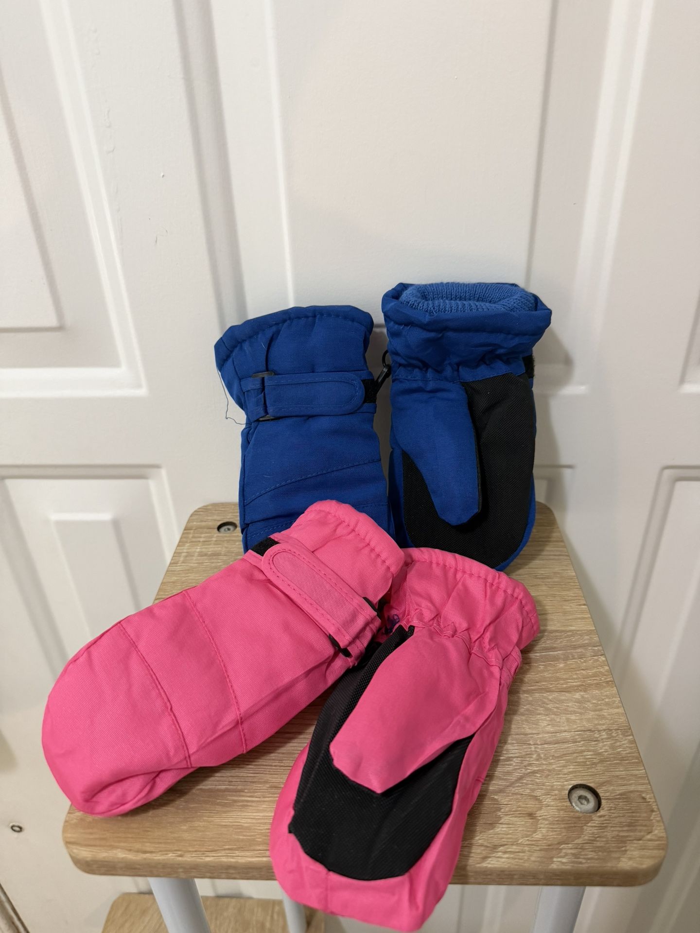 Brand new never used pink and blue toddler/child snow gloves