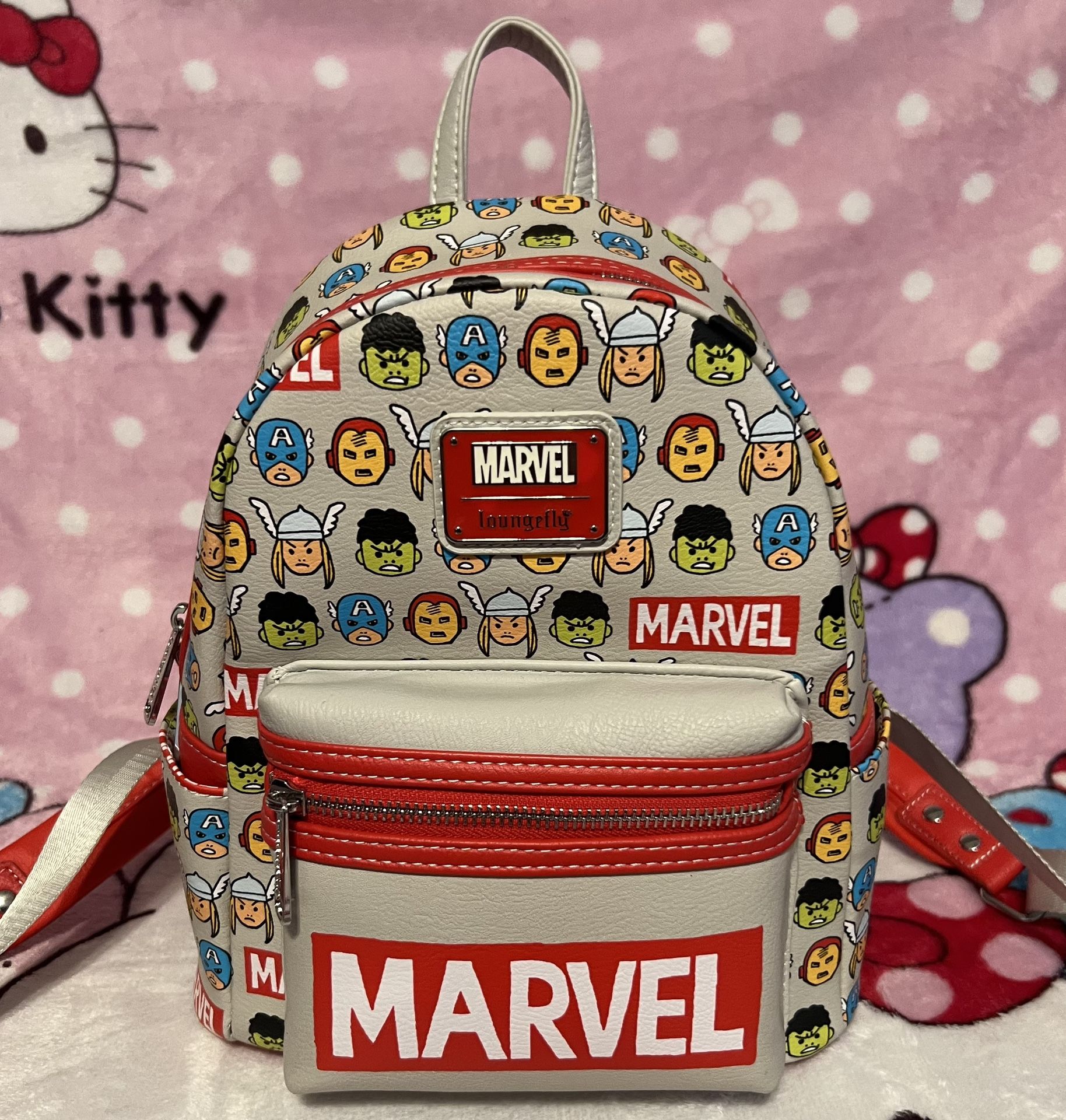 This is a Loungefly Marvel Skottie Young Chibi Group mini backpack.