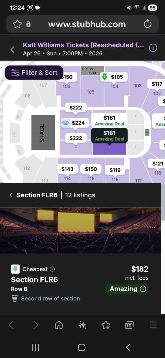 - Show got rescheduled for April 26 2026. - Seats are in front row of section pictured
