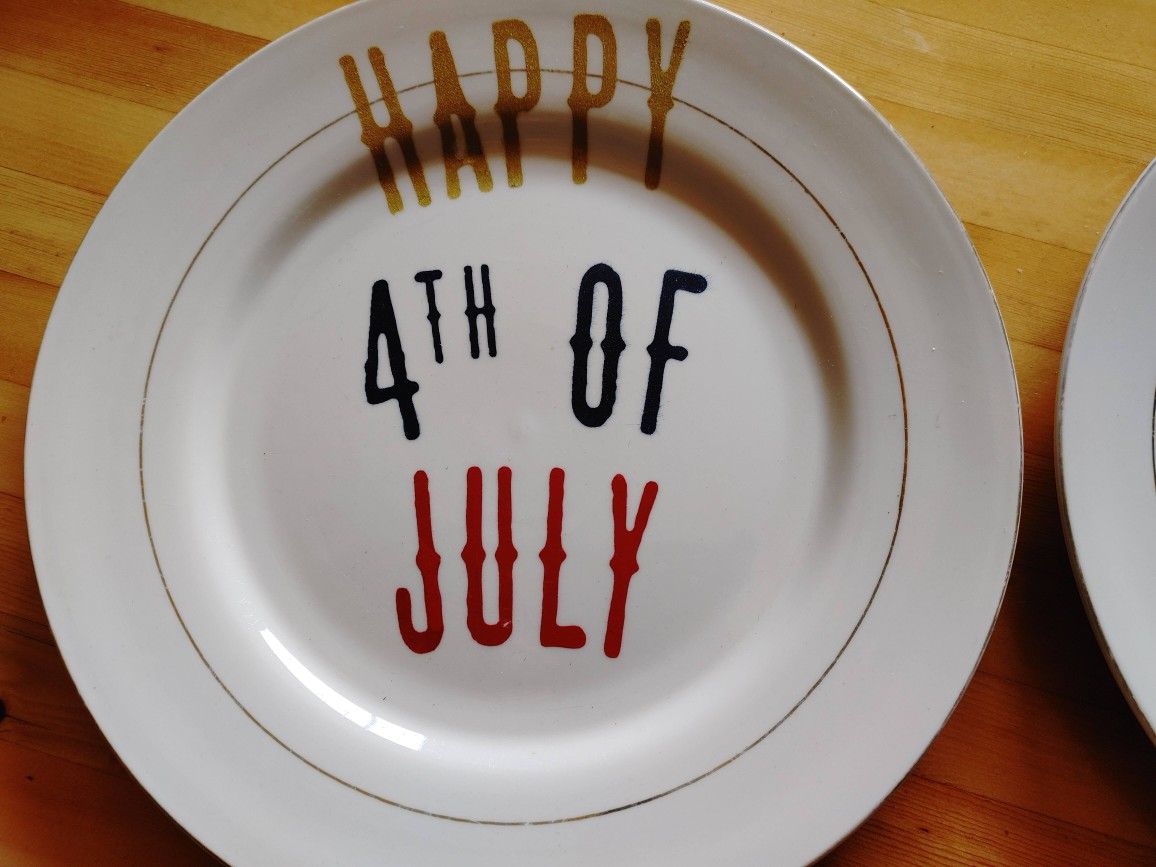 Set of 2 Chalked Plates "Happy 4th of July" Food Safe/Decorative