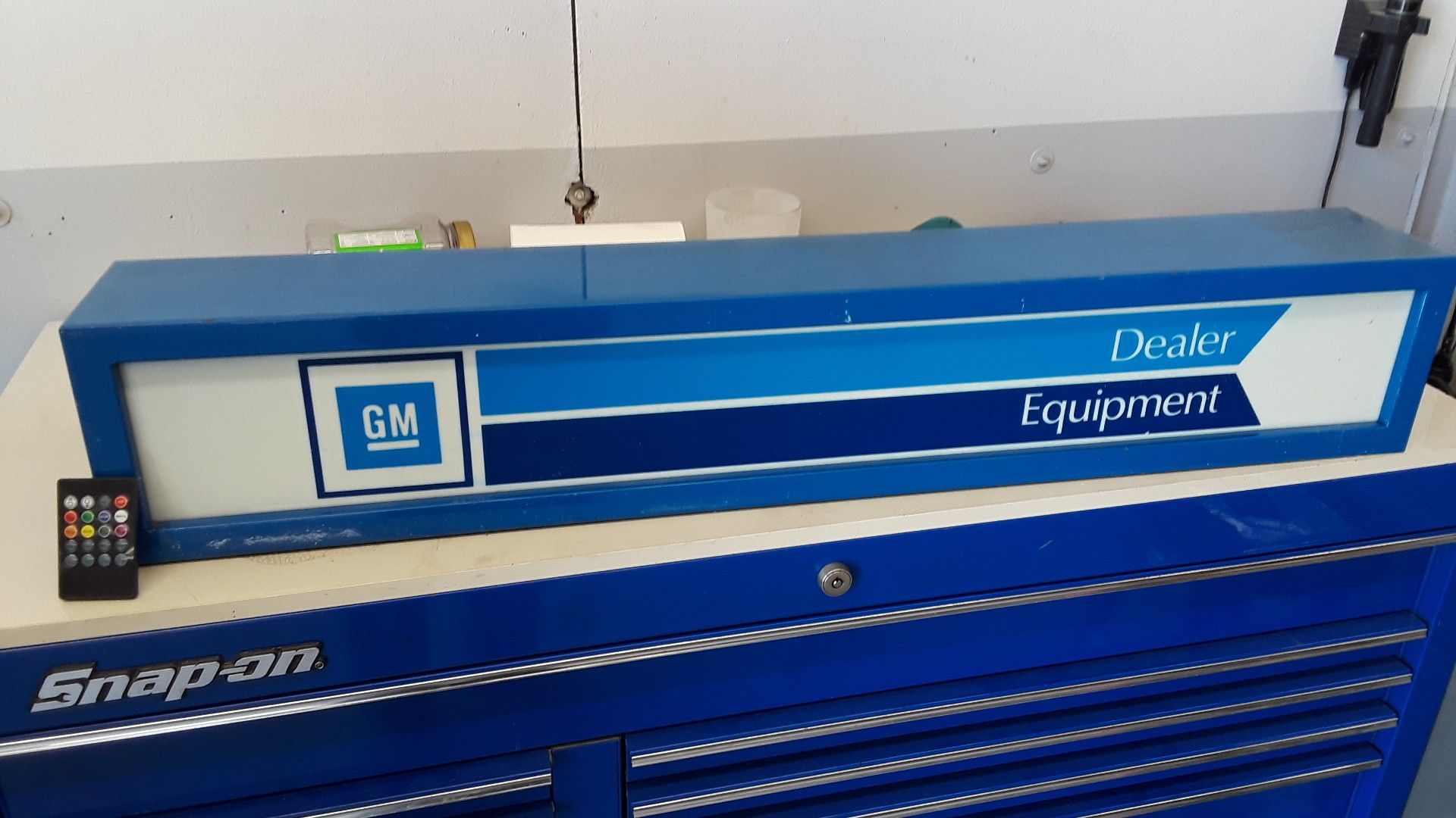 For all you GM lovers. Perfect for your Man or Woman cave!! Changed out fluorescent light to remote control LED strip. One of a kind. Comes with original florescent set up as well. If you want to convert back to original lighting.