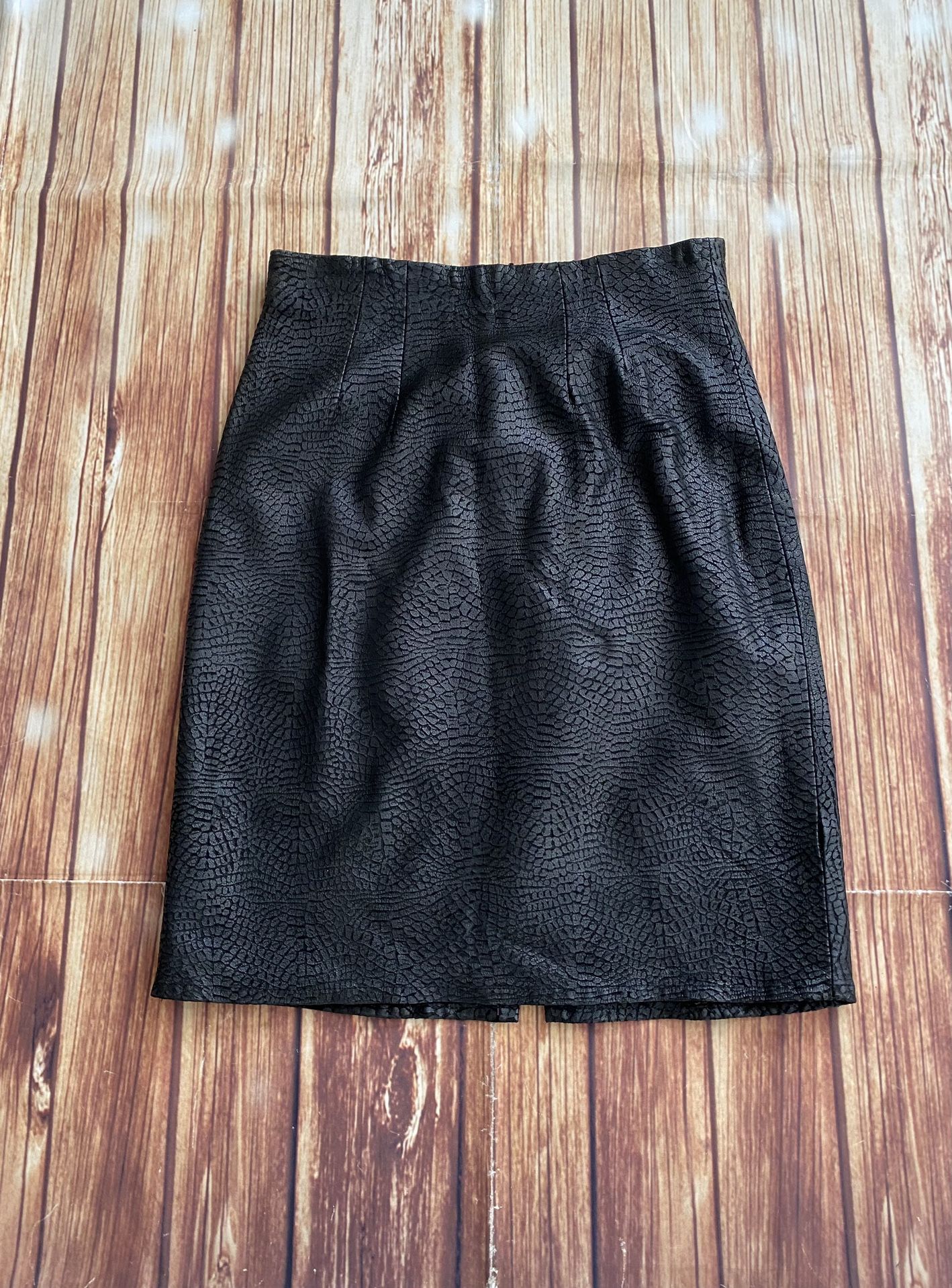 Cedars Vintage Women’s Textured Black Genuine Leather Pencil Skirt Lined Size 6