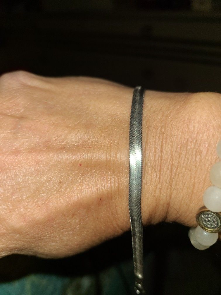 7 1/2 Inch Sterling Silver Herringbome Bracelet Vintage $25