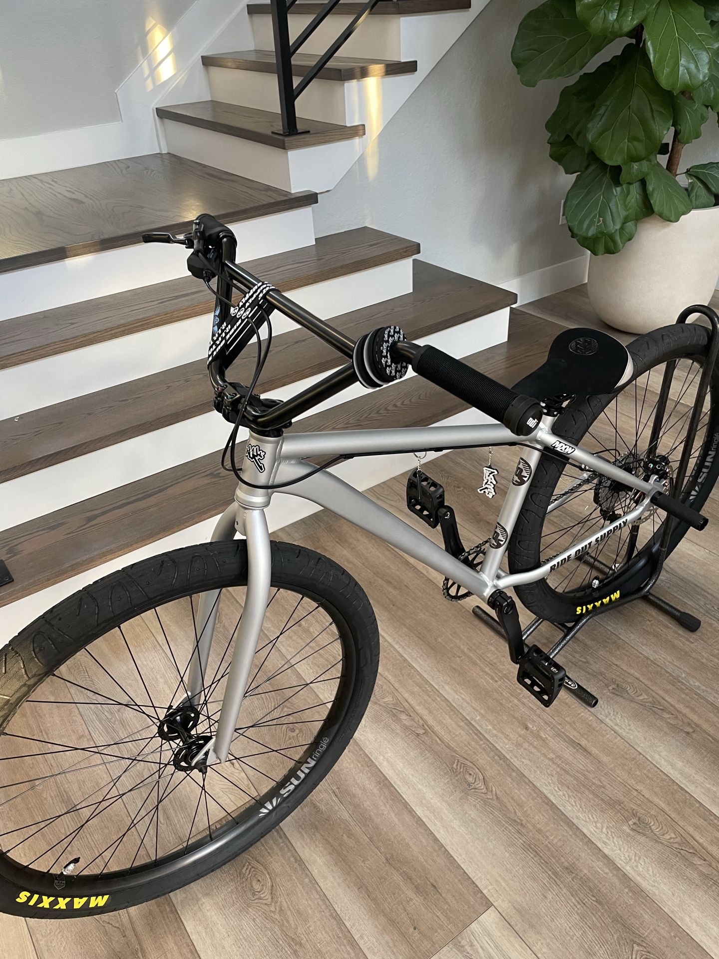 bike is about a 2,300$ build i built it 1 month ago TRADE FOR E BIKES I WILL ADD CASH DEPENDING ON THE BIKE parts list big honkin bars SE ROS seat ROS seat clamp ROS bands ROS keychain bundle sunringle wheel set sound so nice pegs peg grip key chains 6 donut grips maxis hookworms