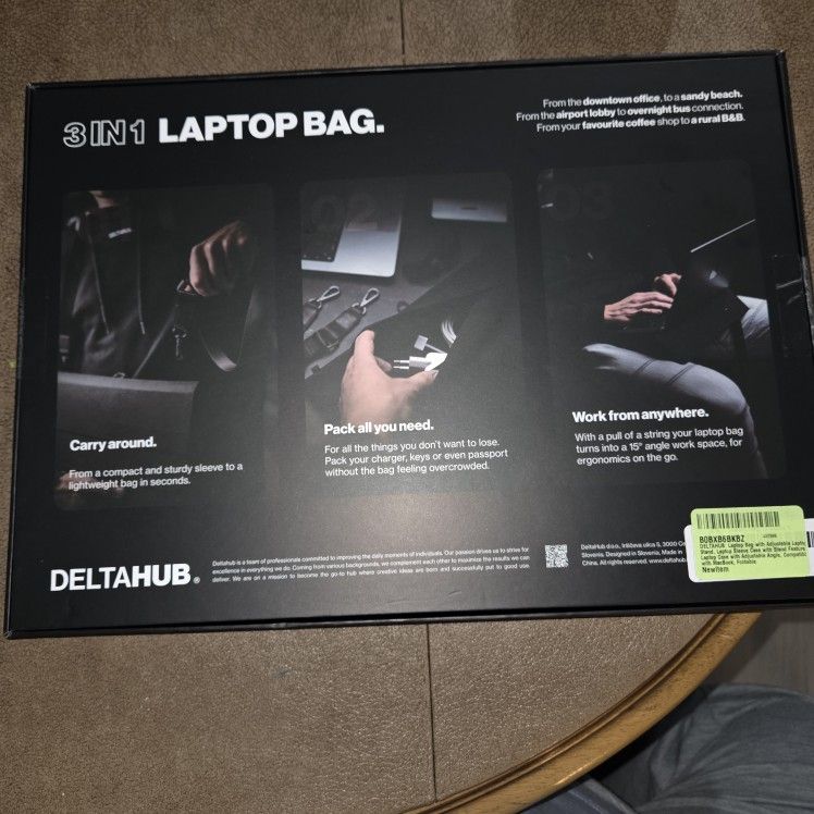 Brand new 3in1 laptop bag Compact and sturdy sleeve to a lightweight bag Pack all you need With a pull of a string the laptop bags turns into a 15° angle work space.
