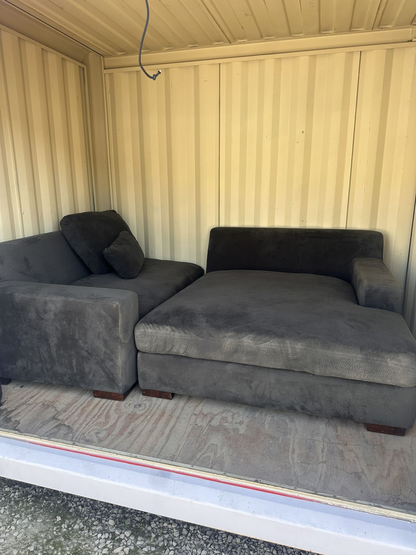 REALLY SOFT AND COMFY oversized couch. Two pieces. HEAVY. Bed is four pieces. Downsizing. Can’t take it with me to my next apartment. Make me an offer.