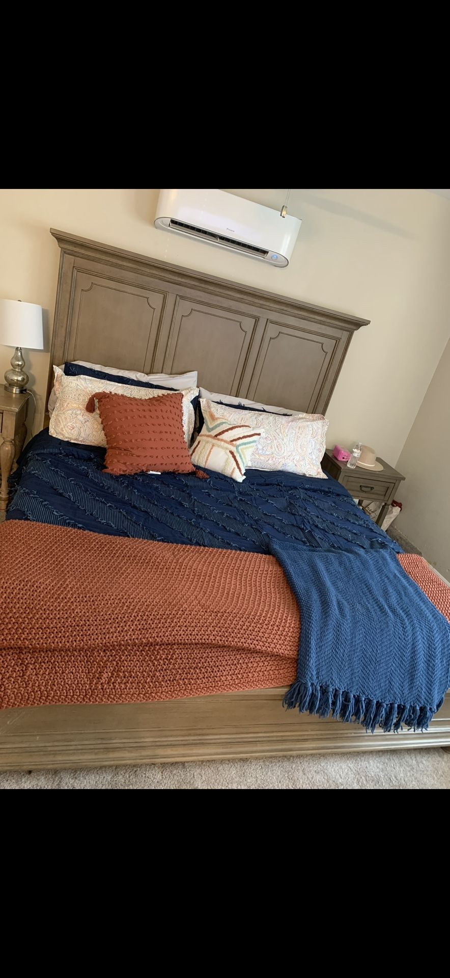 Light brown king size bed frame with mattress