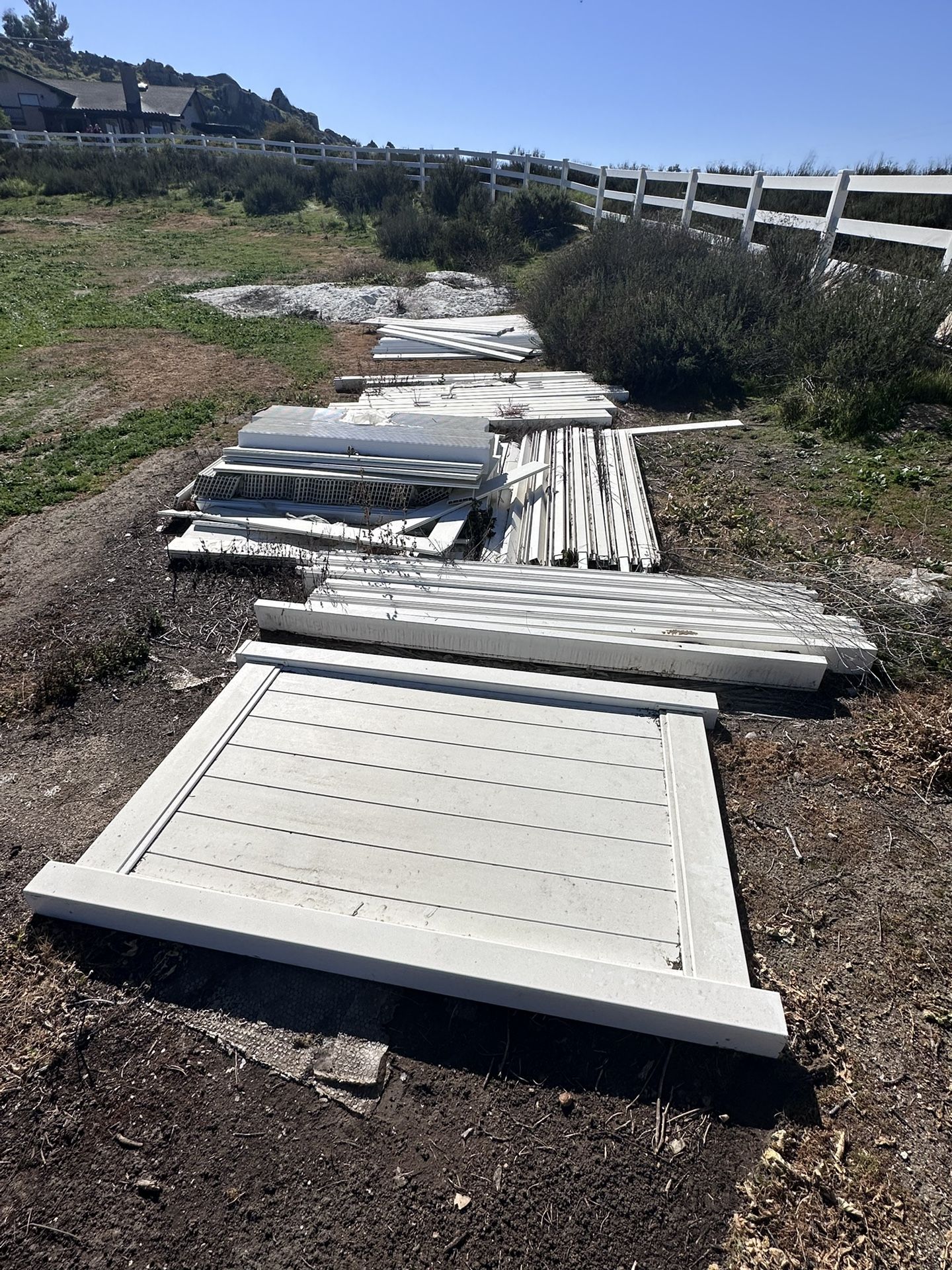 6’ tall after install. 8’ posts 100’ of fencing plus 1 privacy 6’ gate already built and assembled. A little dirty but still in great condition!!