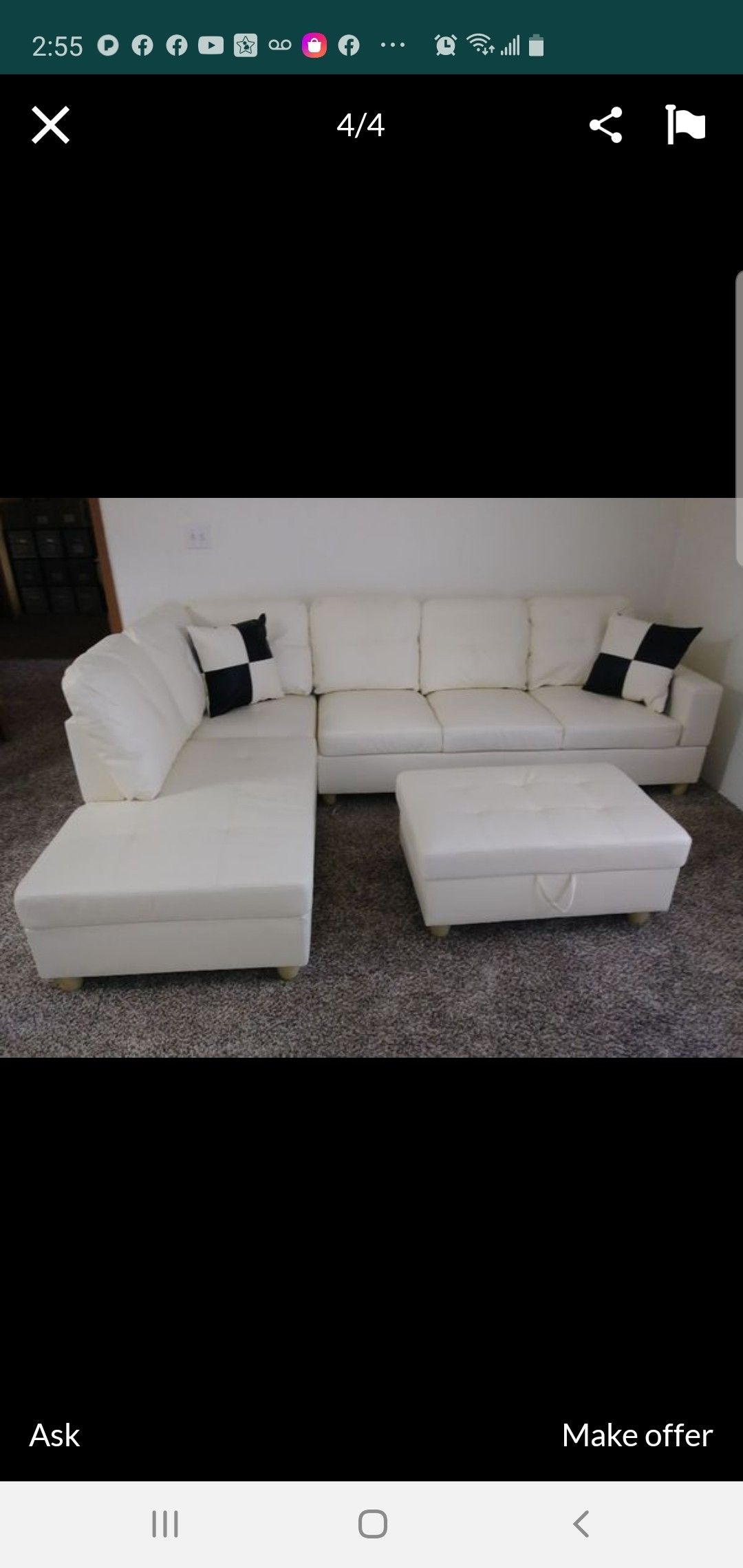 New Sectional with Storage Ottoman at only $600 ( NEW IN BOX. ) " FREE LOCAL DELIVERY " Overall dimensions 103x74x35"H Sofa. 71 1/2 x 32 x 35" H Chaise 74 1/2 x 32 x 35" H Ottoman 37 x 24 1/2 x 16 1/2" H
